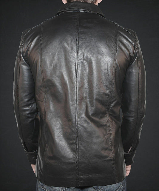 Men's Black Leather TWO BUTTON Closure Blazer TB021