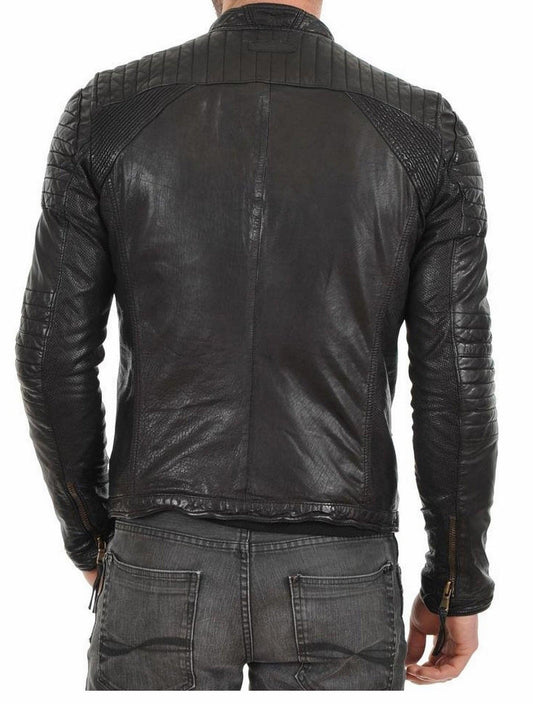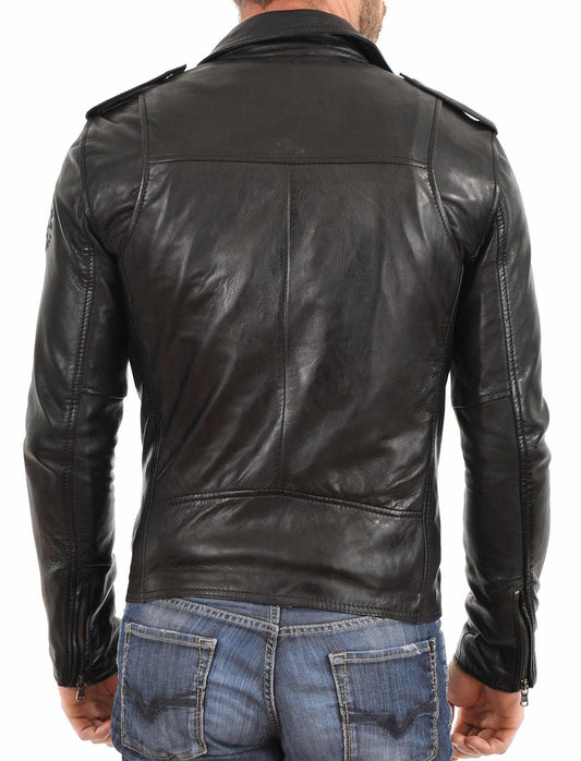 Men's Motorcycle Leather Jacket Dark Brown MJ019