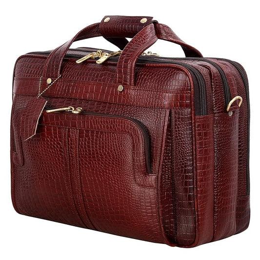 Premium Croc Brown Leather Office & Messenger Bag LB008