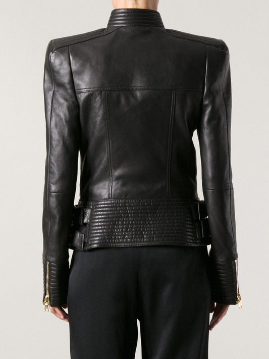 Women's Genuine Leather Motorcycle Jacket Black WJ006