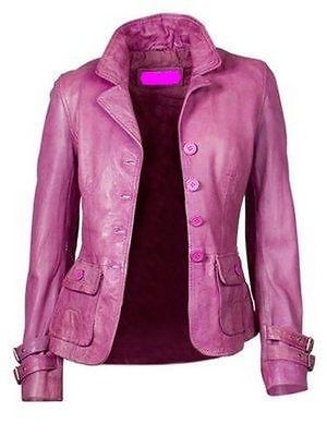Women's Pink Leather FOUR Button Closure Jacket WJ041
