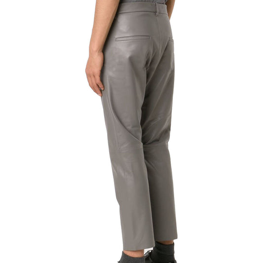 Men's Cropped Gray Slim Fit Leather Pants MP12