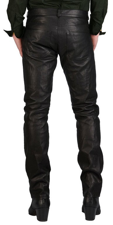 Men's Skinny Fit Black Leather Pants MP28
