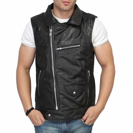 Men’s Sleek Slim Fit Leather Vest Coat MV11