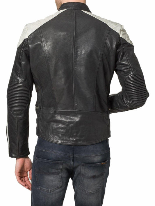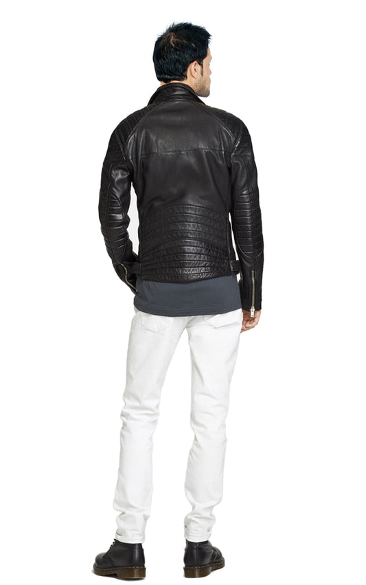 Men's Motorcycle Leather Jacket Black MJ008