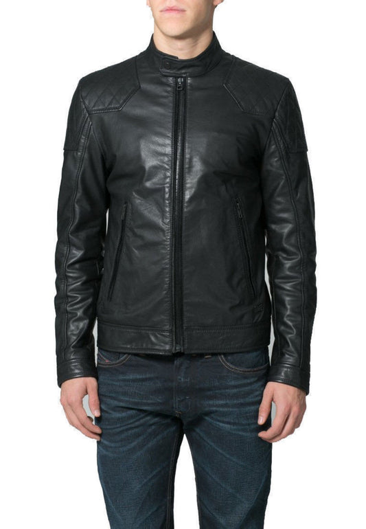 Men's Quilted Shoulders Leather Motorcycle Jacket MJ048