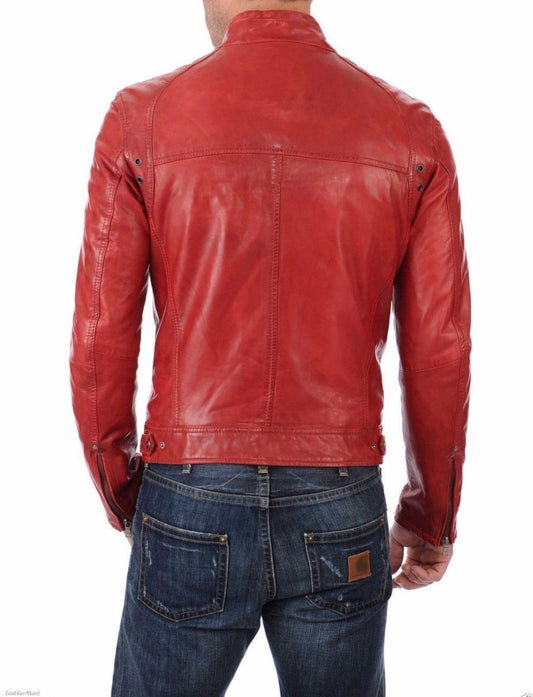 Men's Quilted Leather Motorcycle Jacket MJ045