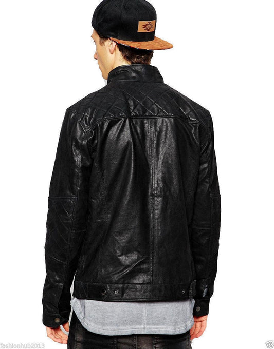 Men's Quilted Leather Motorcycle Jacket MJ043