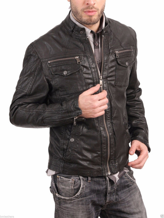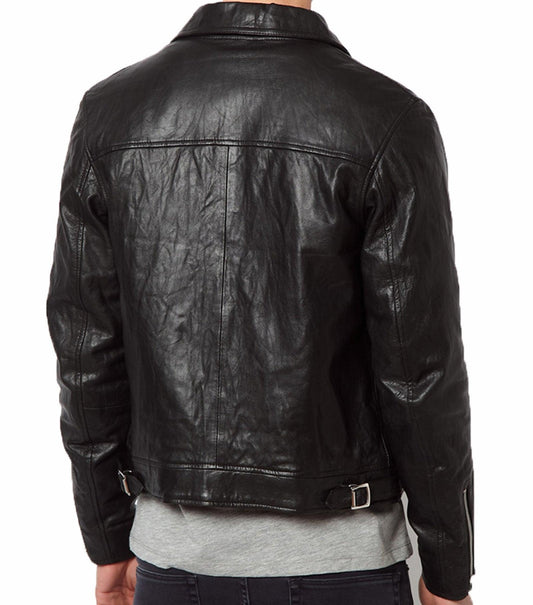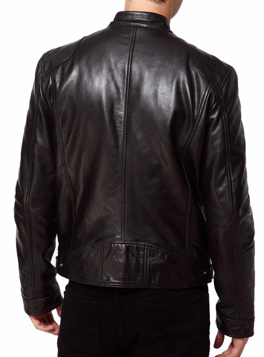 Men's Genuine Leather with Snap Collar Jacket MJ025
