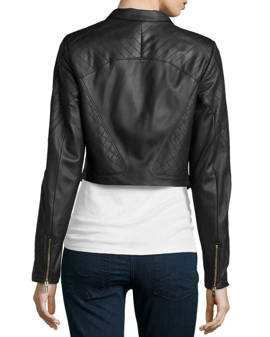 Women's Genuine Leather Motorcycle Jacket Black WJ008