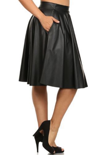 Women's Above Knee Black Genuine Leather Skirt WS06