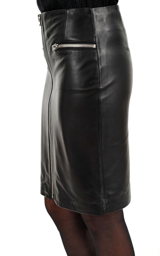 Women's Leather Pencil Skirt with Front Zipper WS15