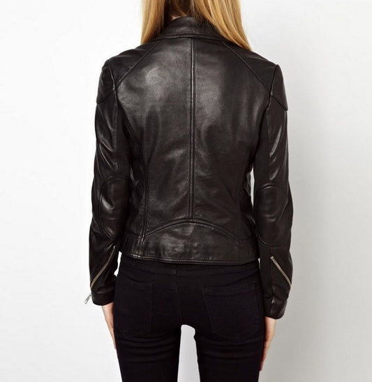 Women's Genuine Leather Motorcycle Jacket Black WJ008