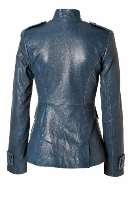 Women's Genuine Leather Motorcycle Jacket Blue WJ015