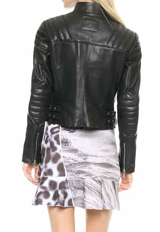 Women's Genuine Leather Motorcycle Jacket Black WJ017