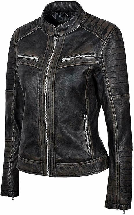 Women's Vintage Distressed Leather Biker Jackets WD03