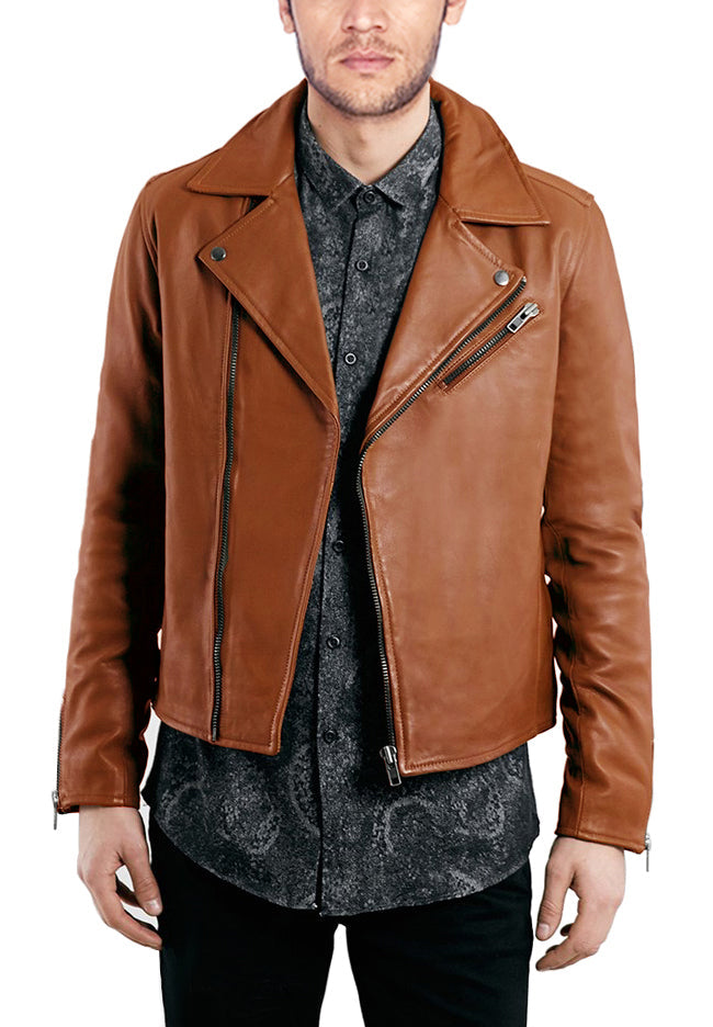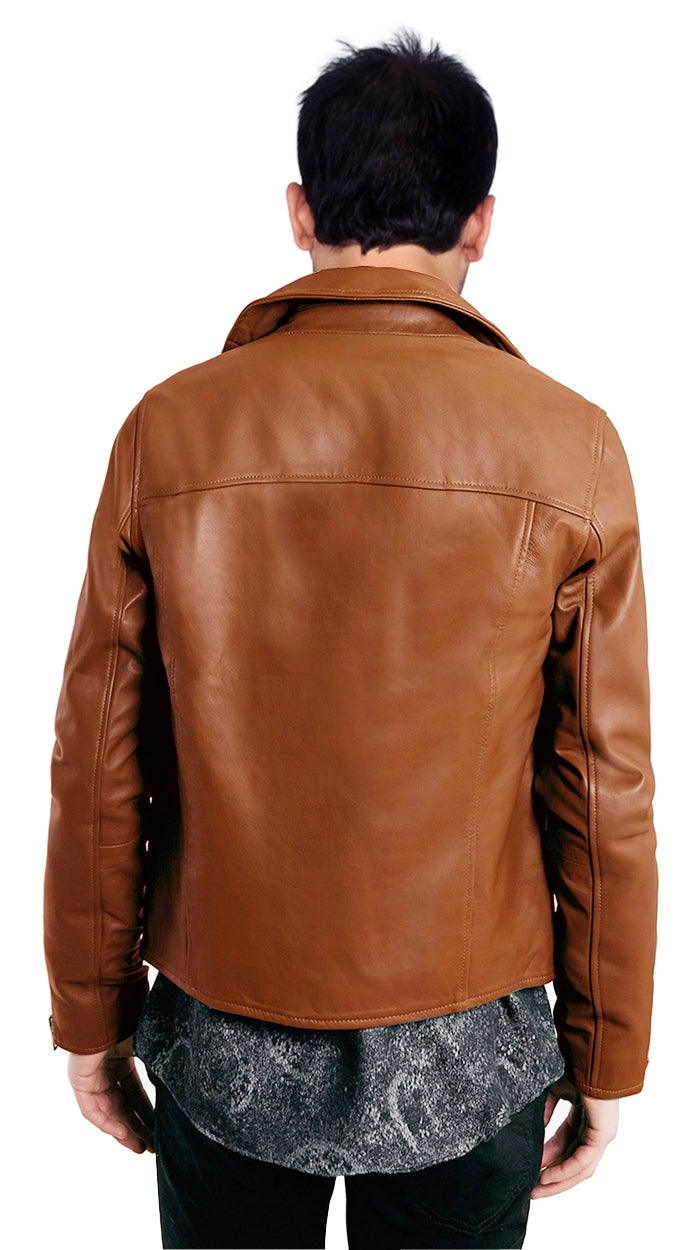 Men's Brown Leather Jacket with Notched Collar MJ034