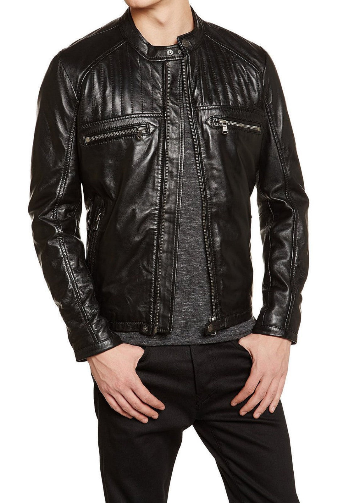 Men's Quilted Leather Motorcycle Jacket MJ043