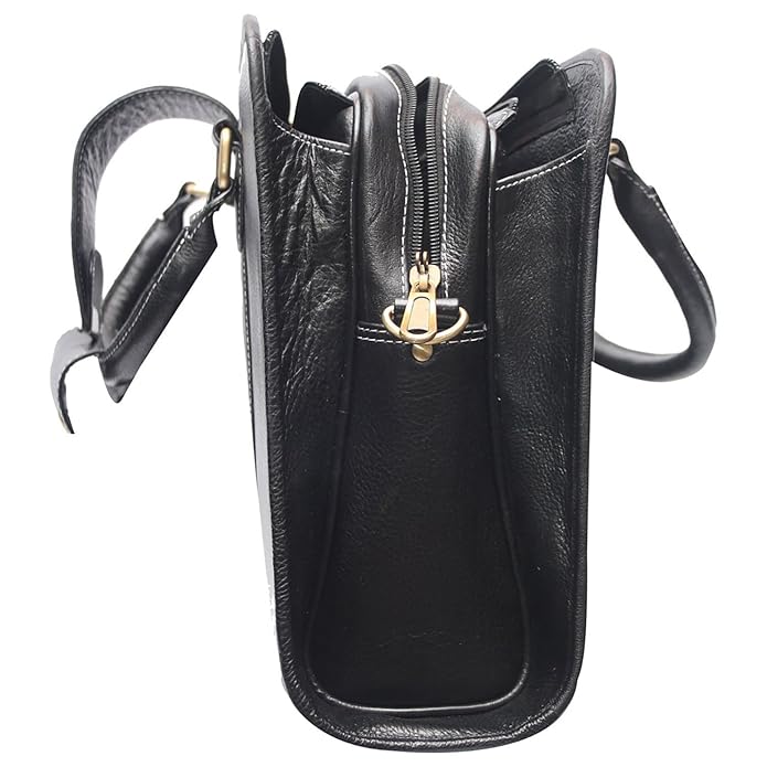 - Made from genuine full grain leather with solid brass fittings, this bag is designed to last and impress. The natural grain classic leather adds a touch of sophistication to your professional attire.