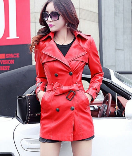 Women’s Orange Leather Mid Length Trench Coat TC04