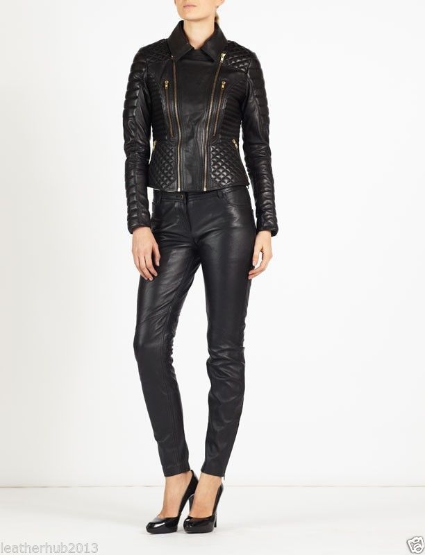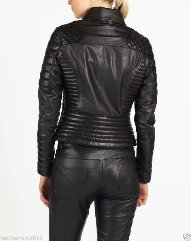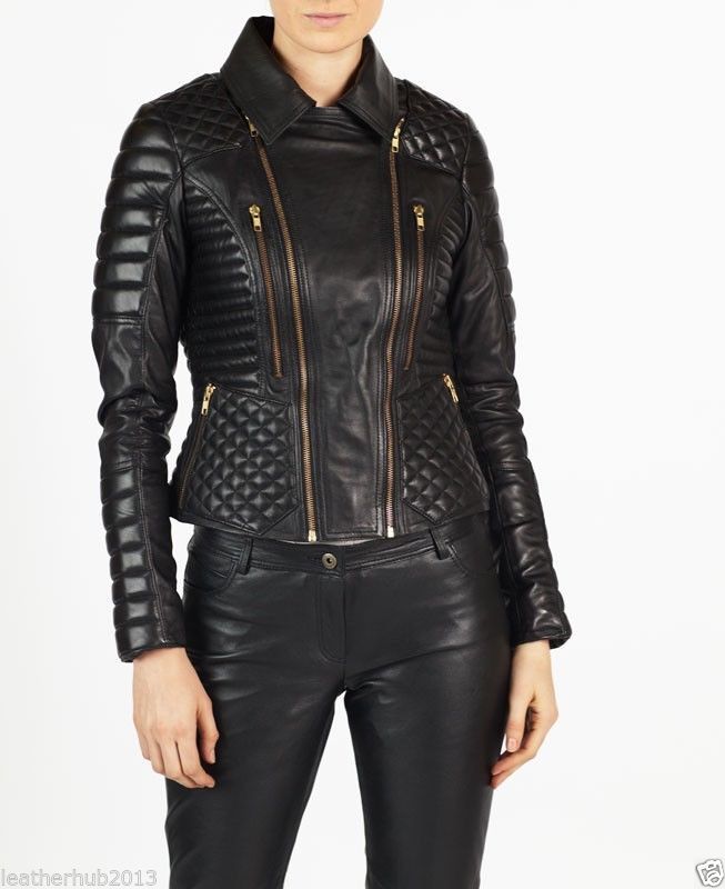 Women’s Quilted Leather Motorcycle Jacket WJ031