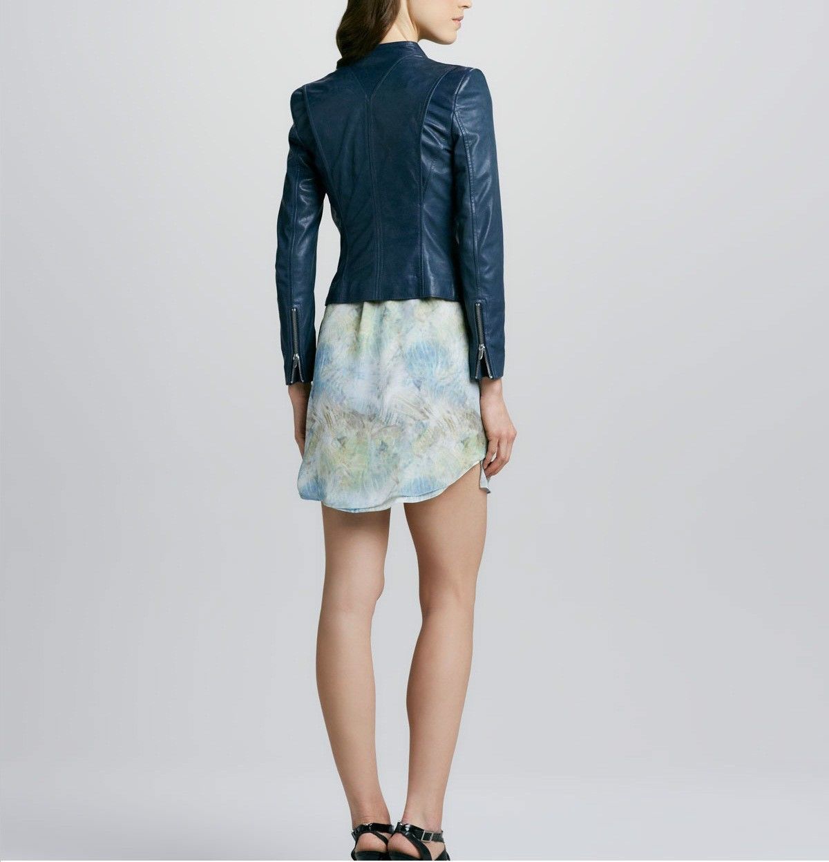 Women's Blue Stylish Genuine Leather Jacket WJ022