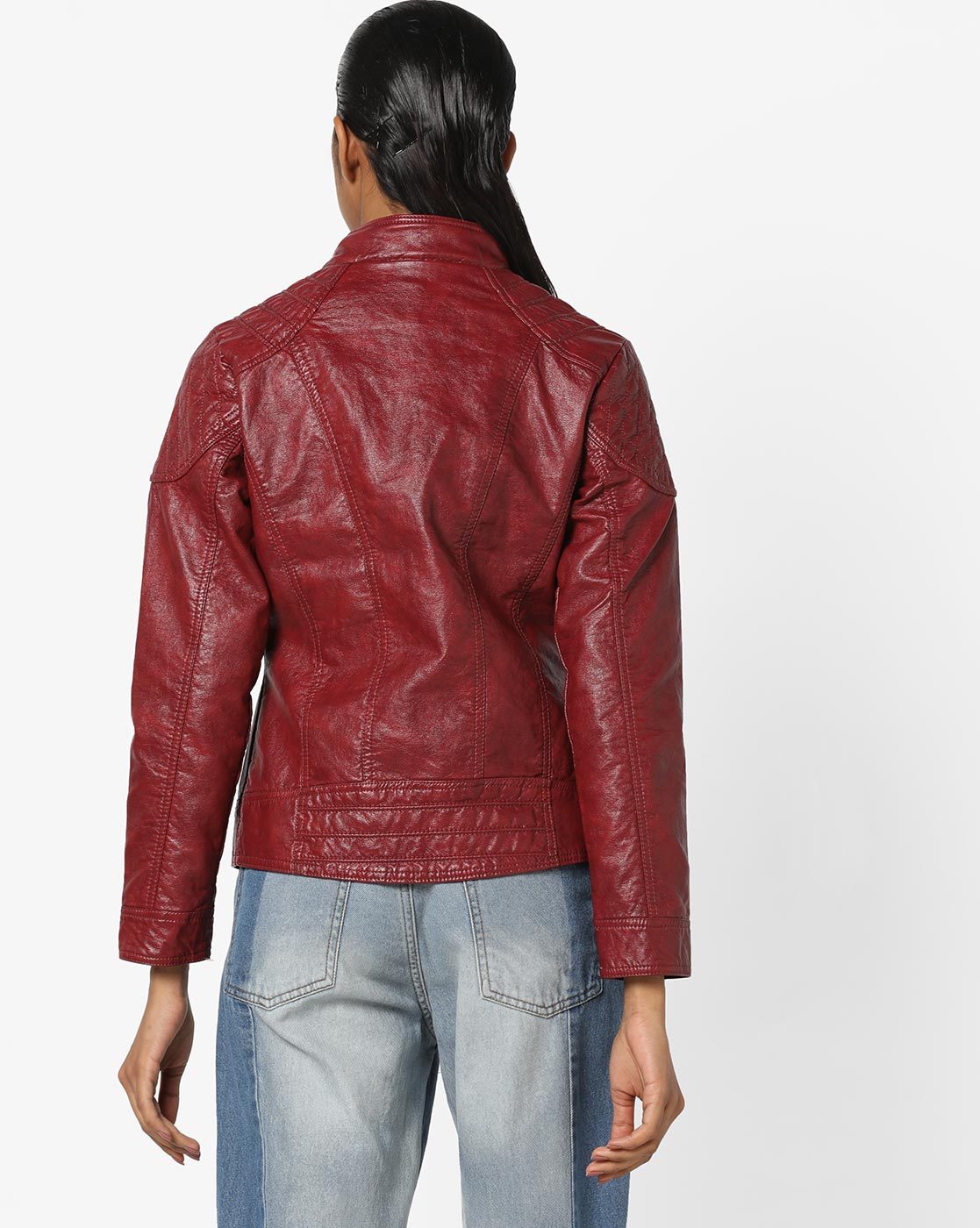 Women's Burgundy Leather Jacket with Quilted Design WJ064
