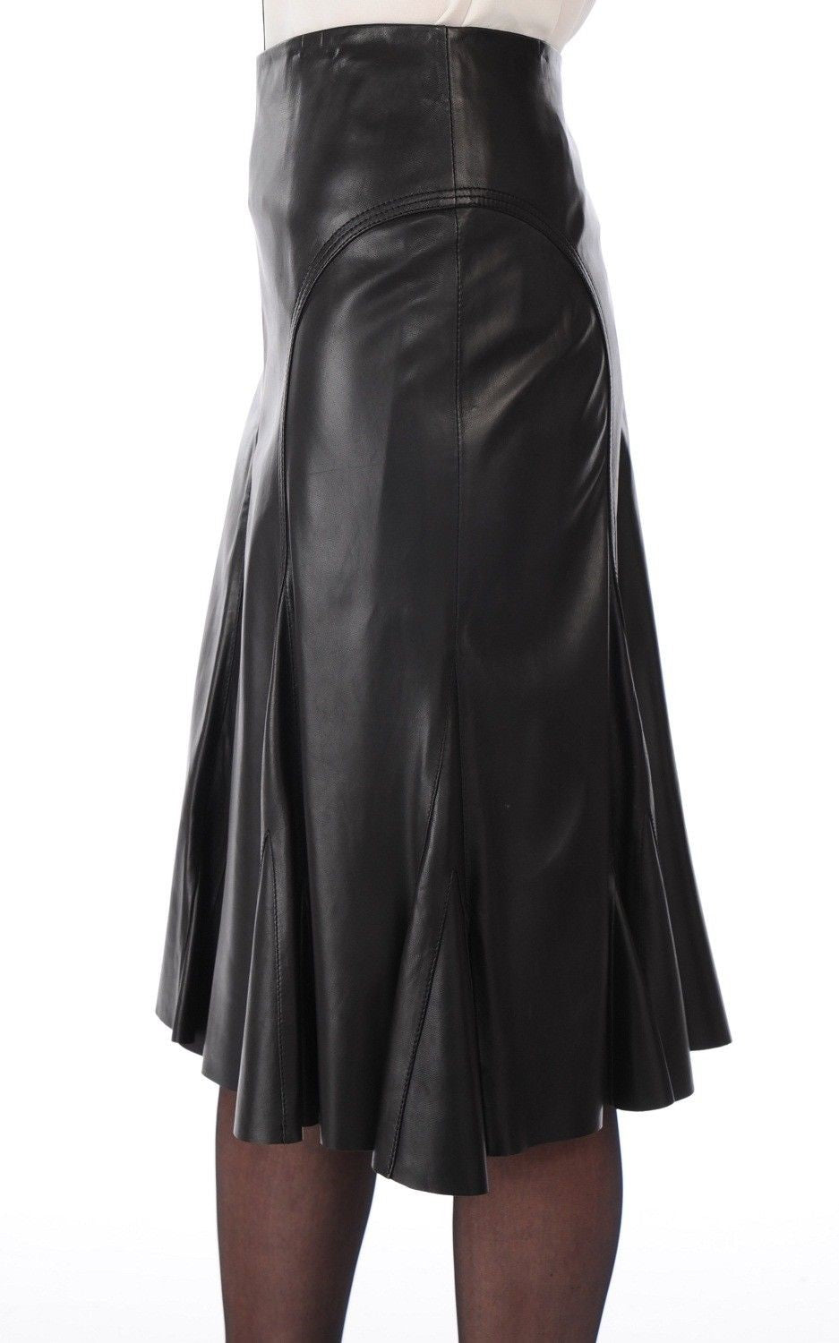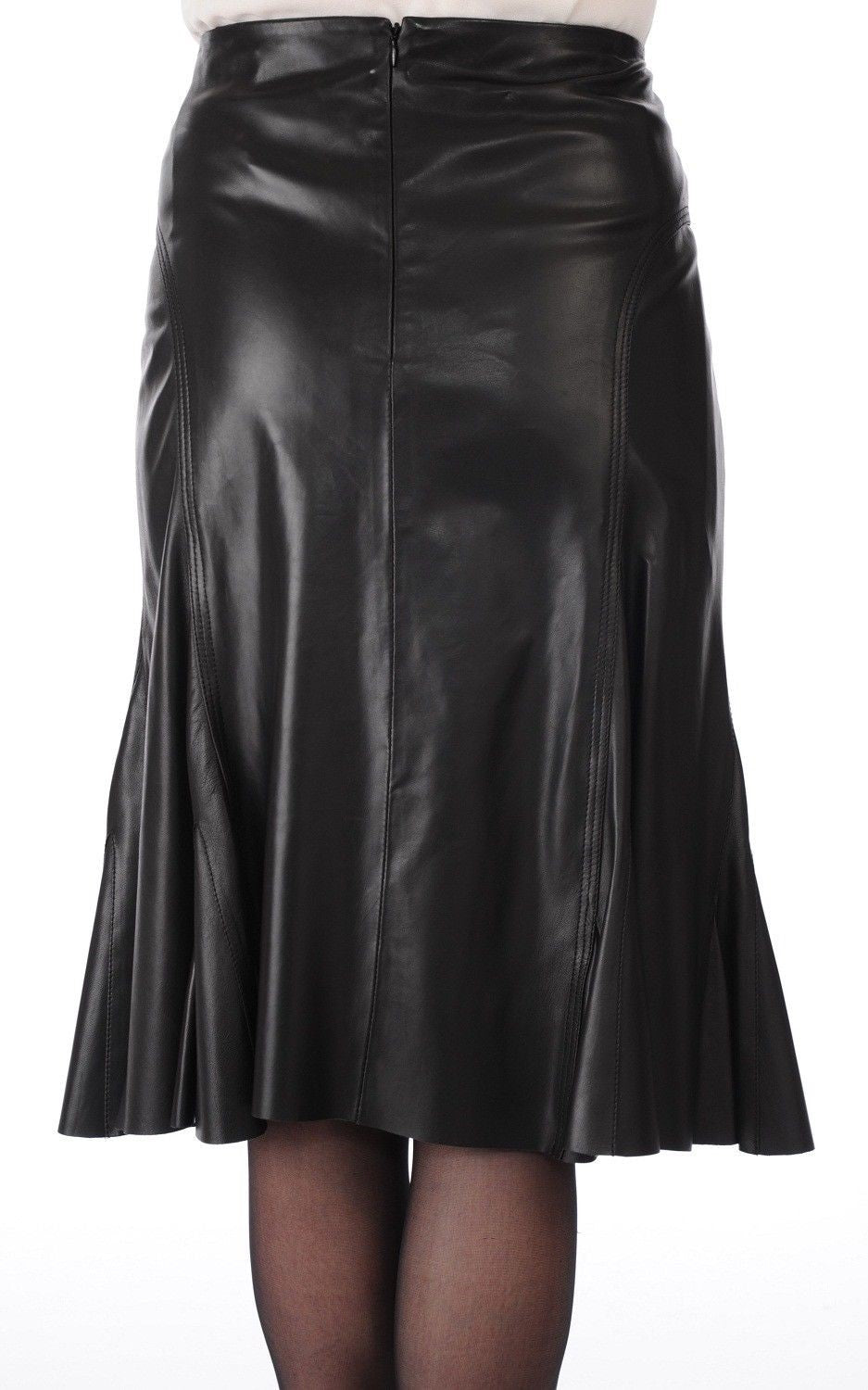 Unleash your inner fashionista with this exquisite knee length black leather godet skirt. The unique godet style adds a playful flair, giving the skirt a dynamic silhouette that moves beautifully with you. Crafted from genuine leather, this piece promises both comfort and style. The convenient back zipper closure ensures a sleek fit, while the luxurious satin lining adds an extra layer of sophistication. Perfect for making a statement at any event, this skirt is your ticket to effortless elegance.