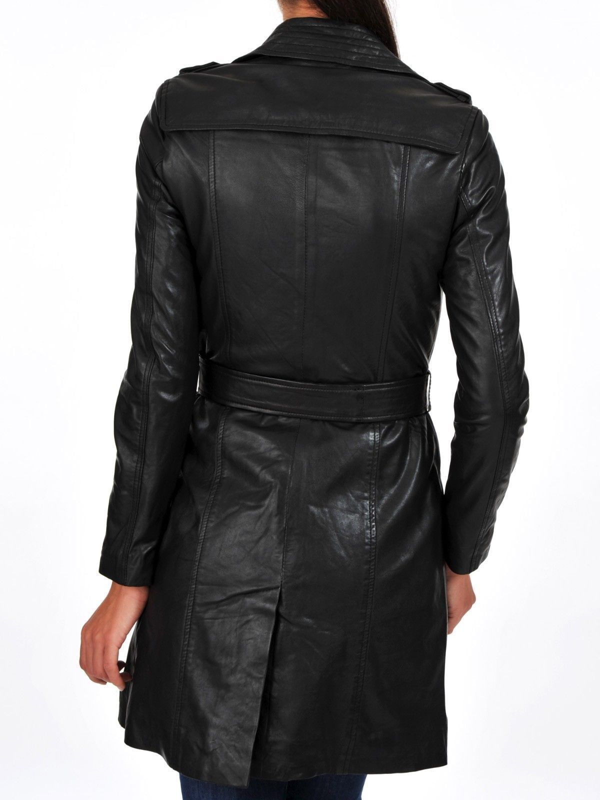 Women's Real Leather Mid Length Trench Coat TC10